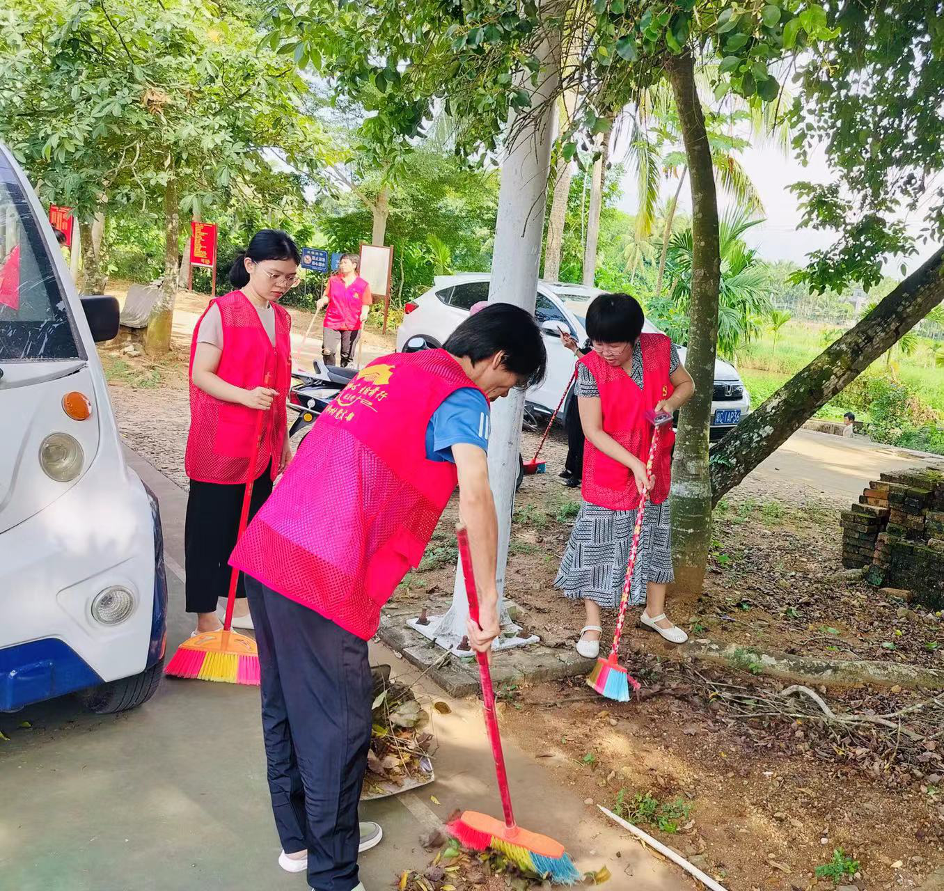 院党支部书记、院长李翠以及妇幼党员在里邦村委会进行环境卫生大整治